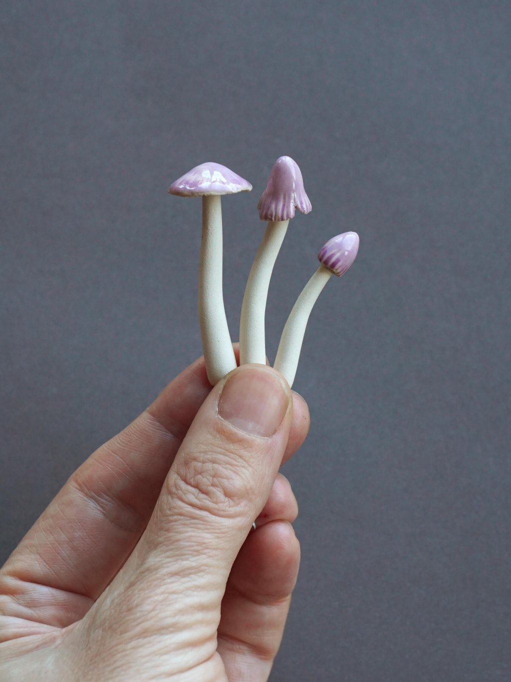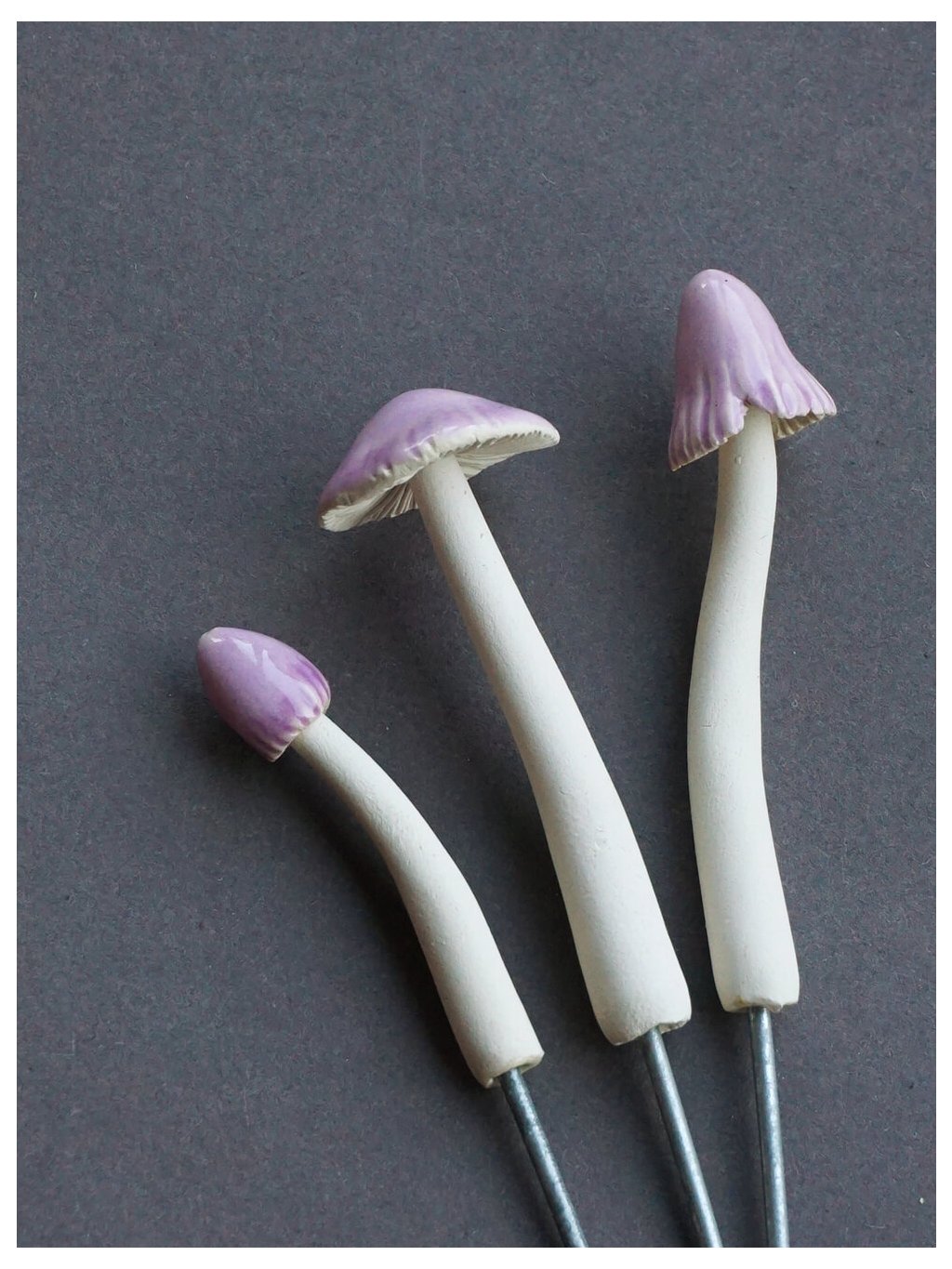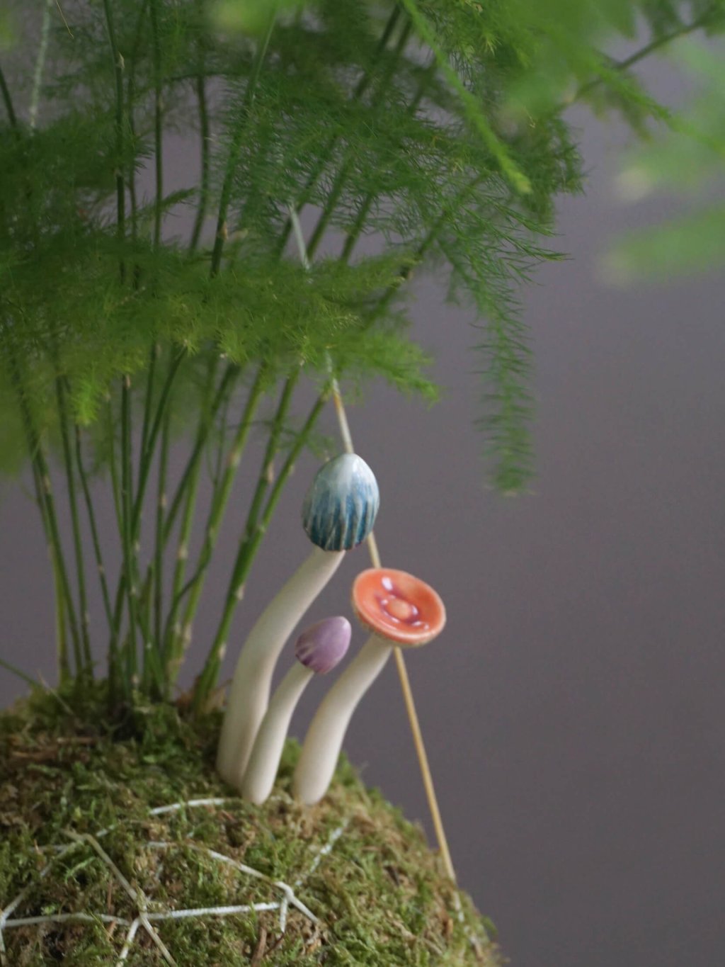 Každý zápich je ručně tvarovaný a glazovaný. Díky subtilnímu tvaru působí nenápadně, ale když je objevíte v květináči, floráriu nebo kokedamě, okamžitě přitáhnou pozornost. Rozhrajte fantazii a nechte houbičky vyrůstat z kokedamy, z květináče nebo s nimi vykouzlete tajemný mikrosvět ve floráriu.