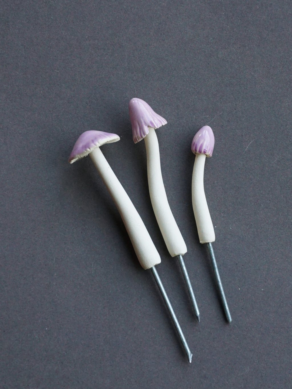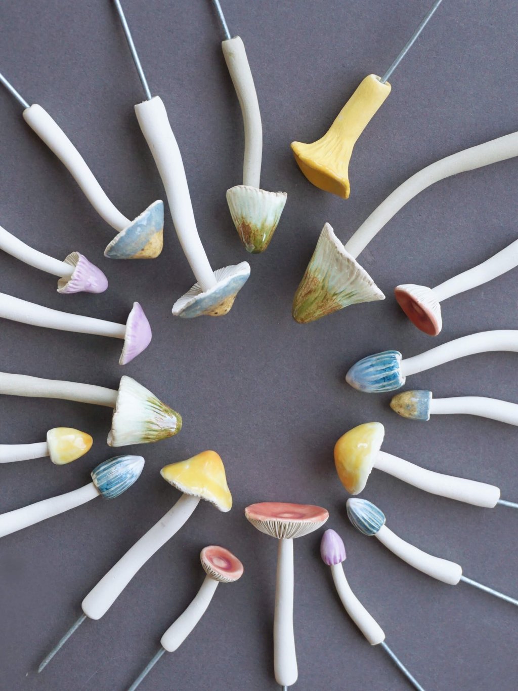 Keramické zápichy jsou inspirované drobnými houbami, které v lese snadno přehlédnete a přitom mají neuvěřitelné kouzlo.