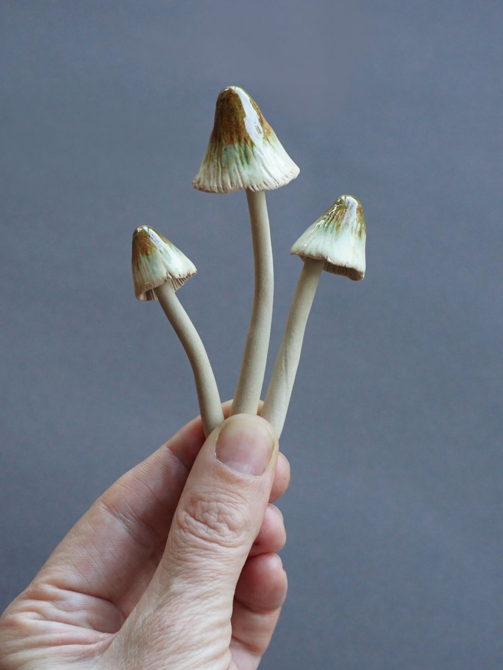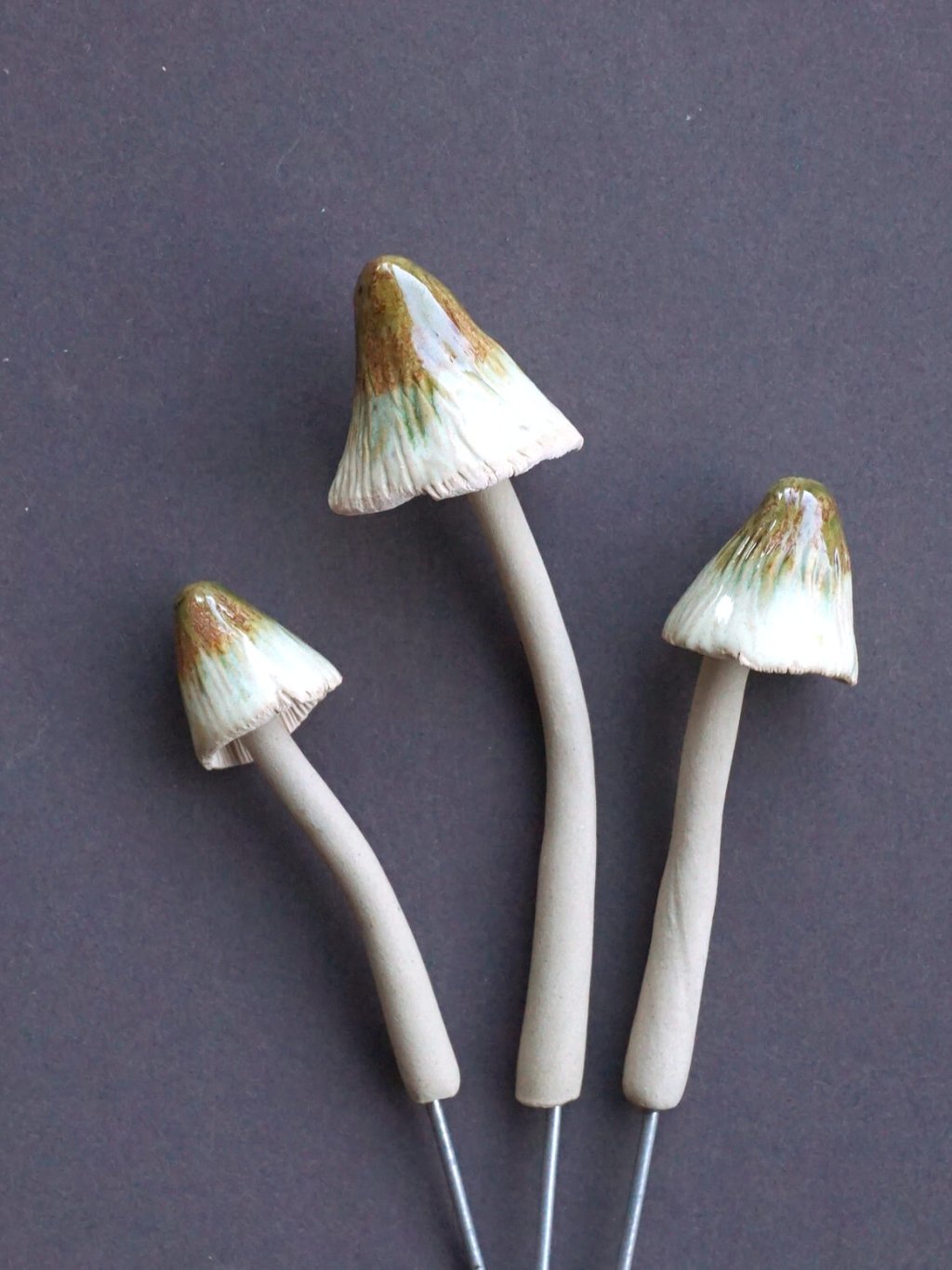 Každý zápich je ručně tvarovaný a glazovaný. Díky subtilnímu tvaru působí nenápadně, ale když je objevíte v květináči, floráriu nebo kokedamě, okamžitě přitáhnou pozornost. Rozhrajte fantazii a nechte houbičky vyrůstat z kokedamy, z květináče nebo s nimi vykouzlete tajemný mikrosvět ve floráriu.