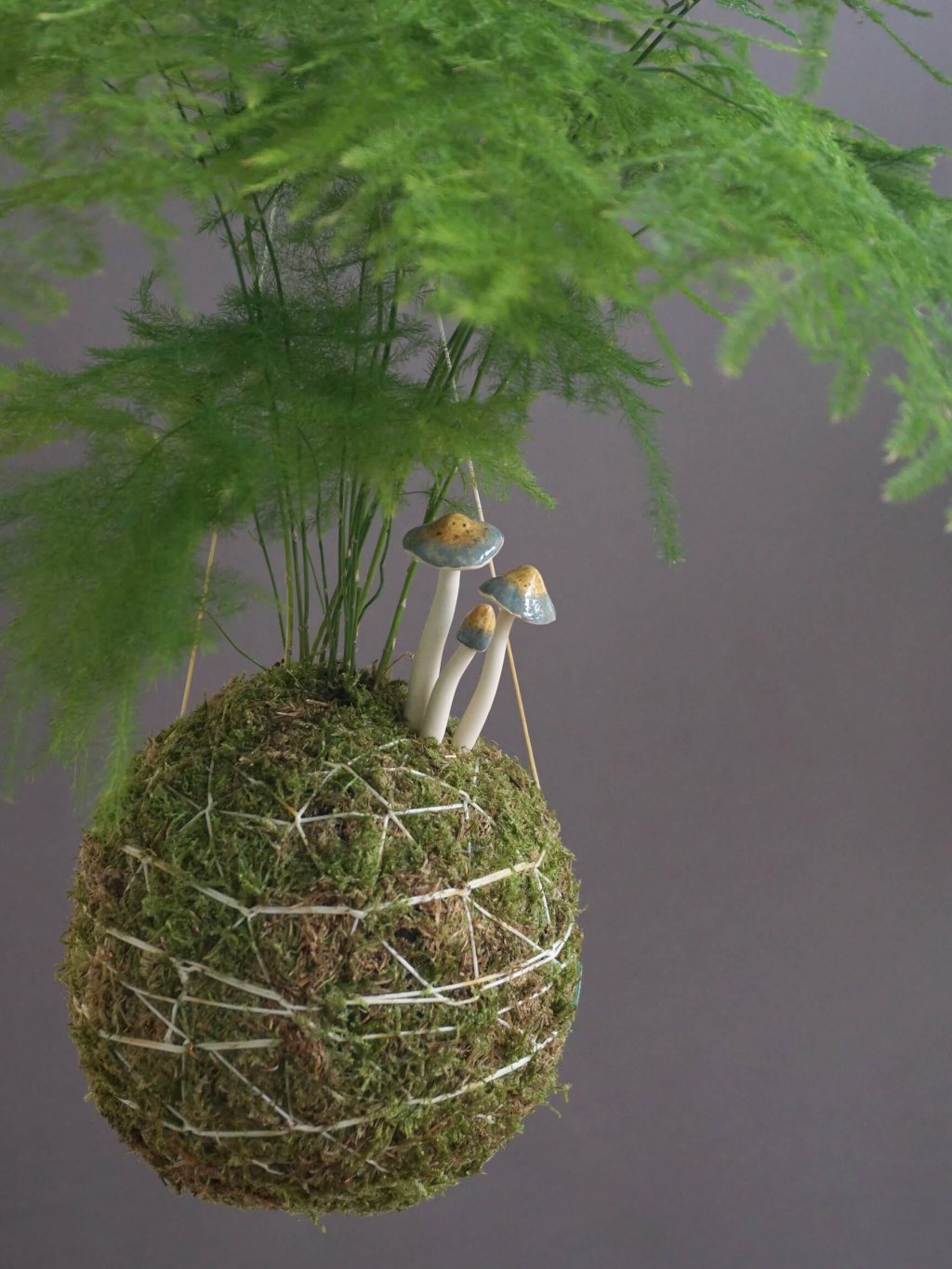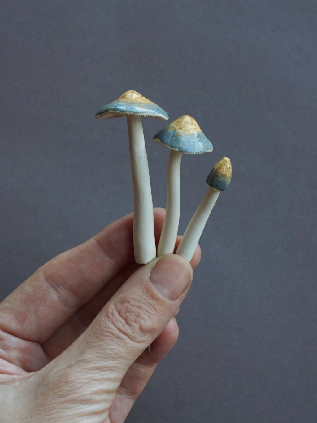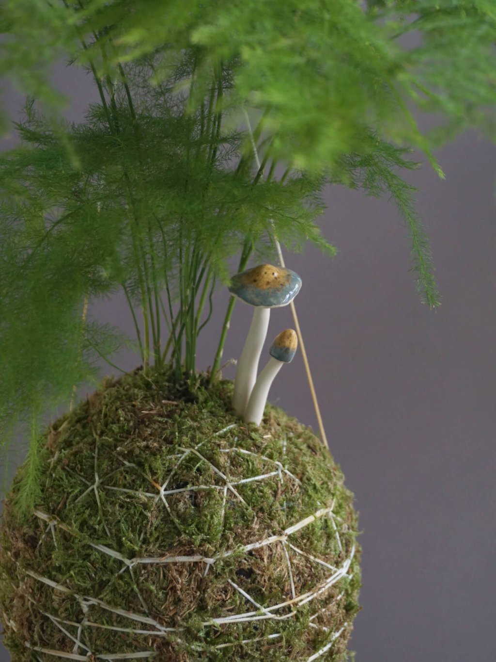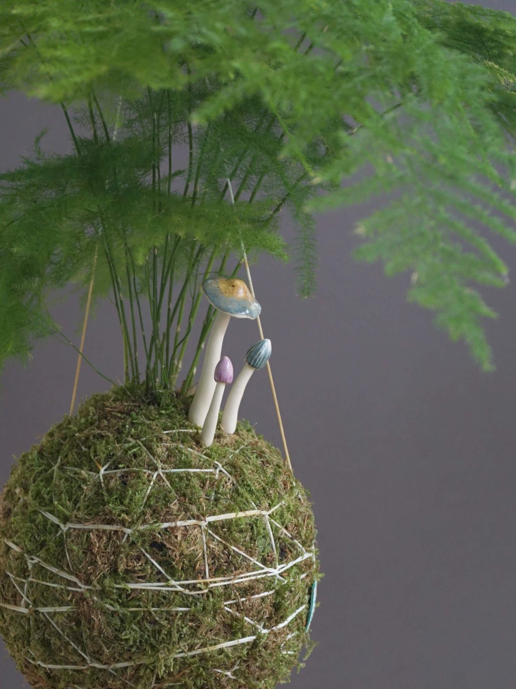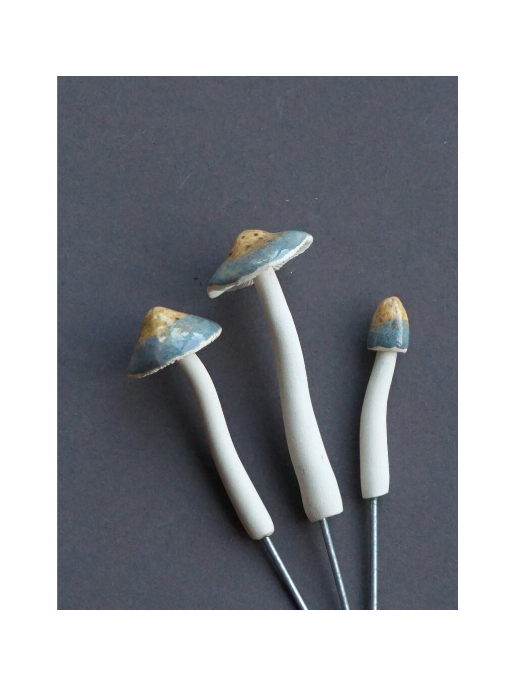 Každý zápich je ručně tvarovaný a glazovaný. Díky subtilnímu tvaru působí nenápadně, ale když je objevíte v květináči, floráriu nebo kokedamě, okamžitě přitáhnou pozornost. Rozhrajte fantazii a nechte houbičky vyrůstat z kokedamy, z květináče nebo s nimi vykouzlete tajemný mikrosvět ve floráriu.