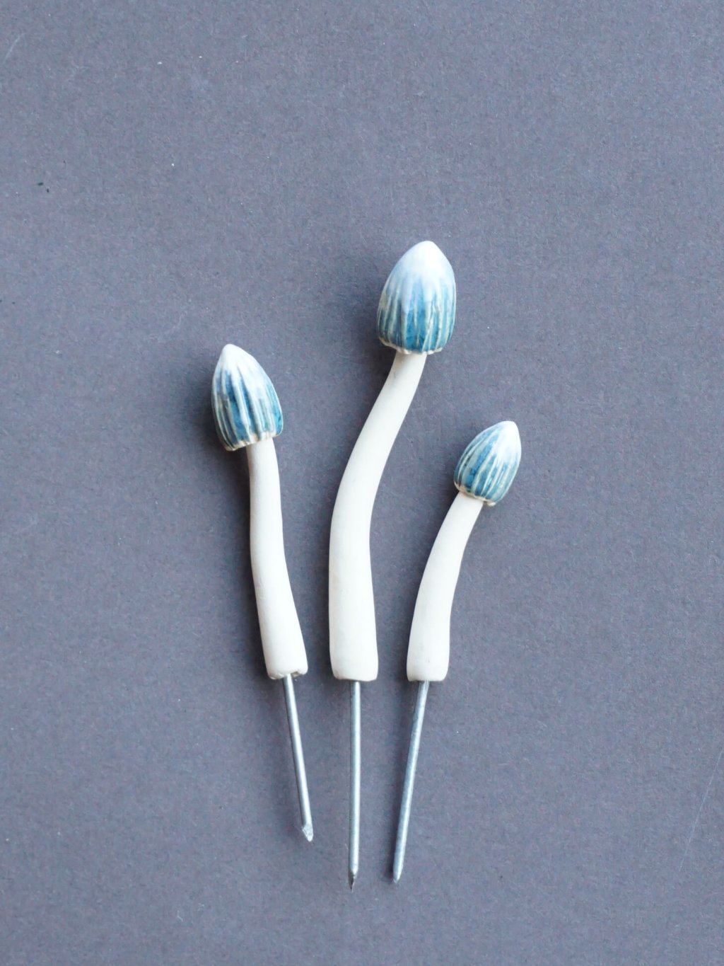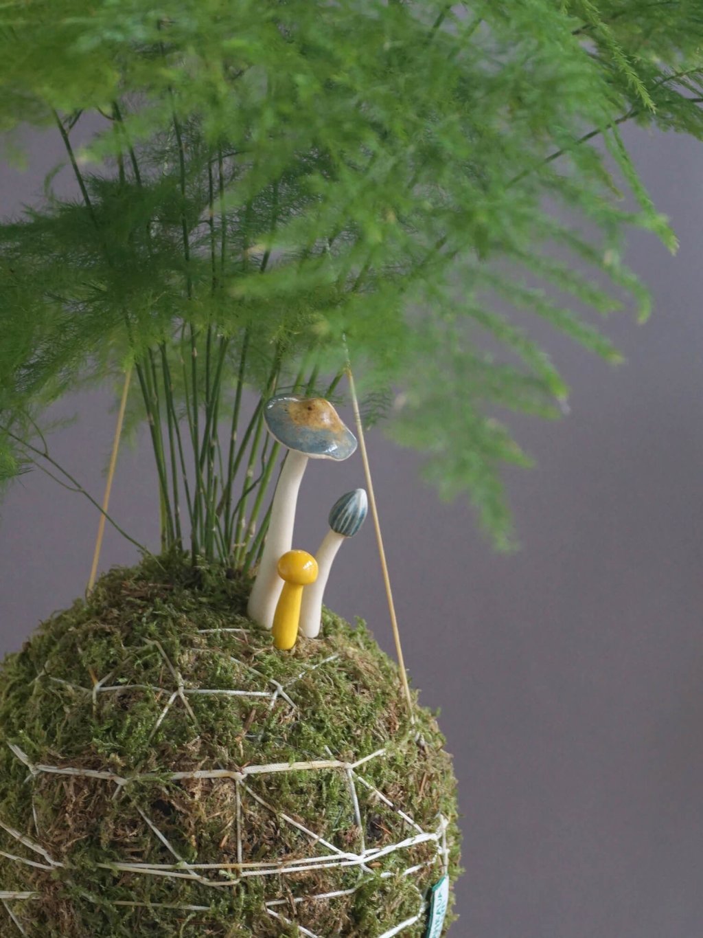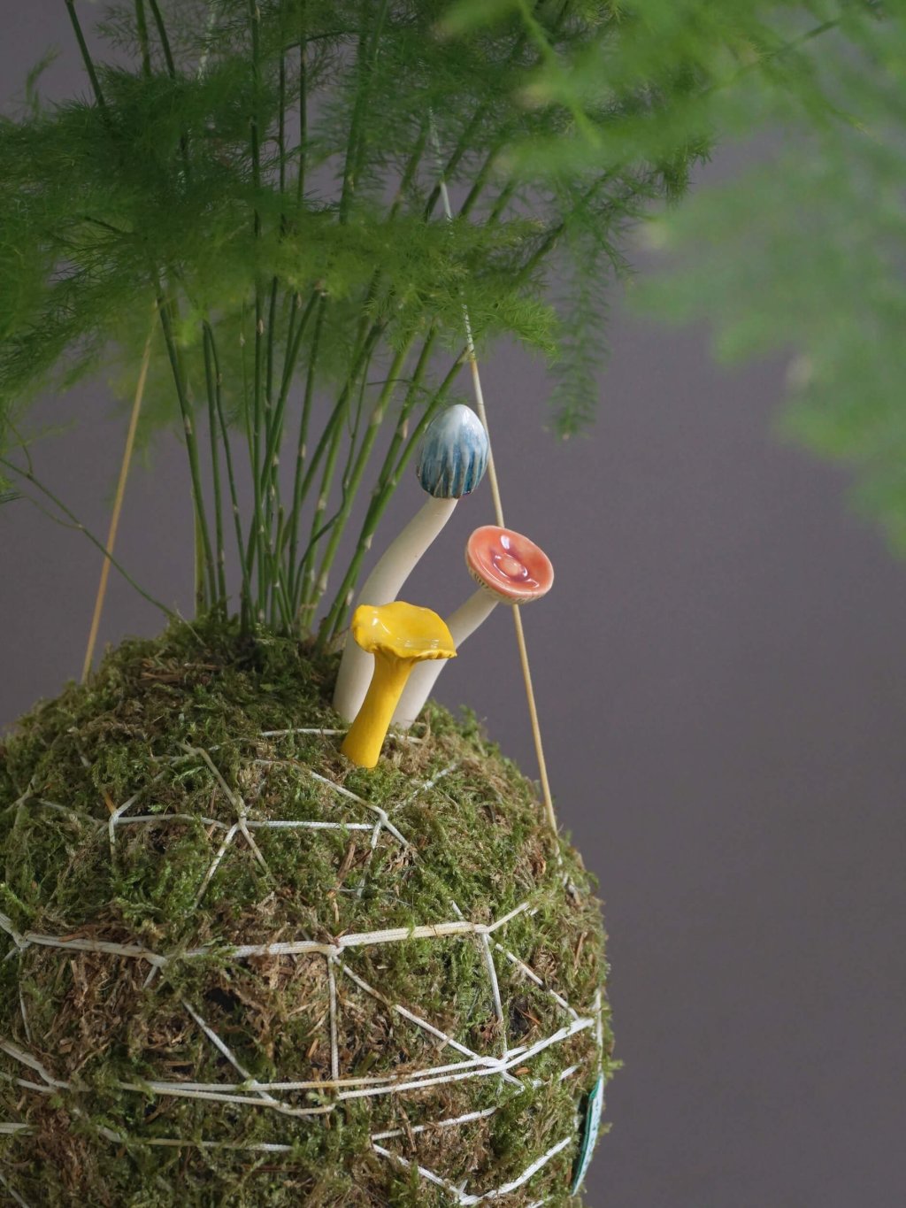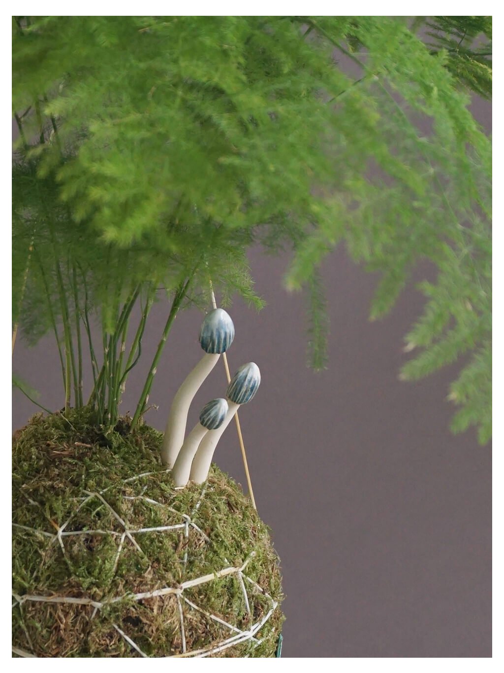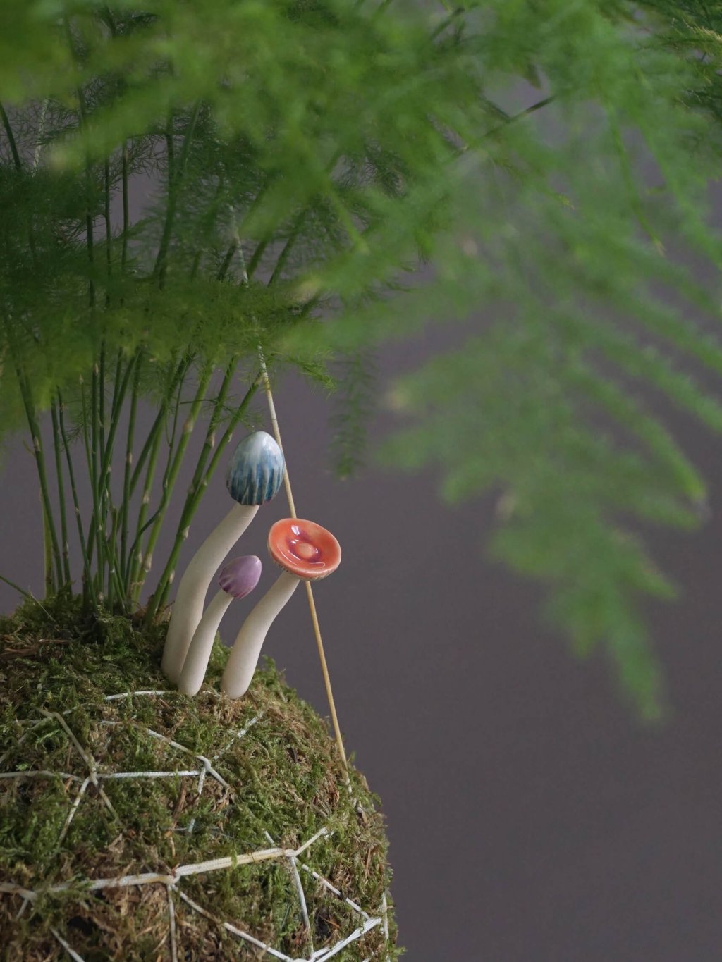 Každý zápich je ručně tvarovaný a glazovaný. Díky subtilnímu tvaru působí nenápadně, ale když je objevíte v květináči, floráriu nebo kokedamě, okamžitě přitáhnou pozornost. Rozhrajte fantazii a nechte houbičky vyrůstat z kokedamy, z květináče nebo s nimi vykouzlete tajemný mikrosvět ve floráriu.