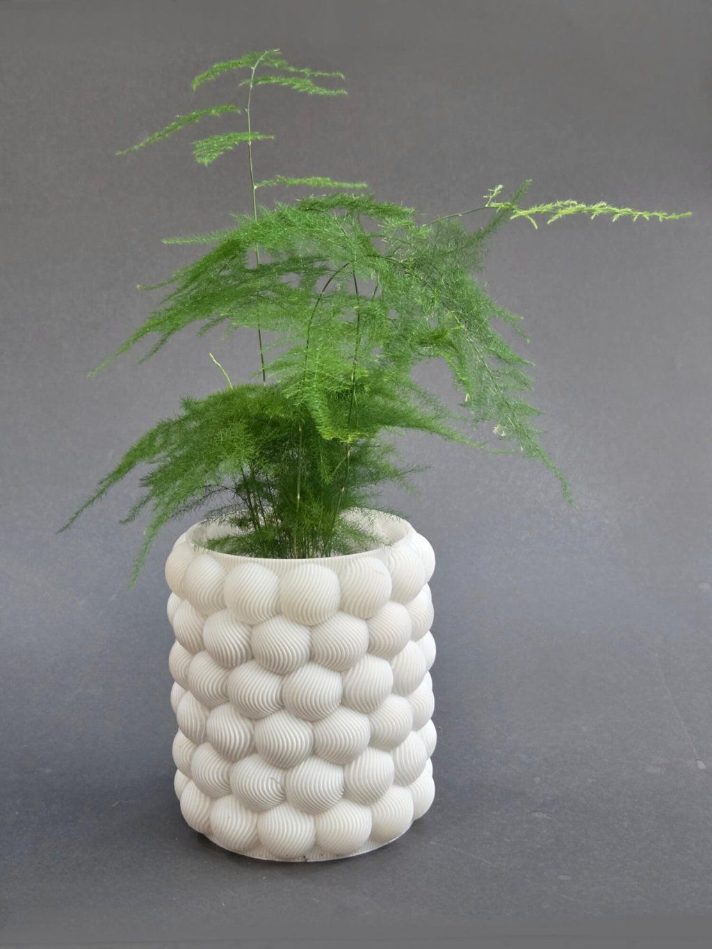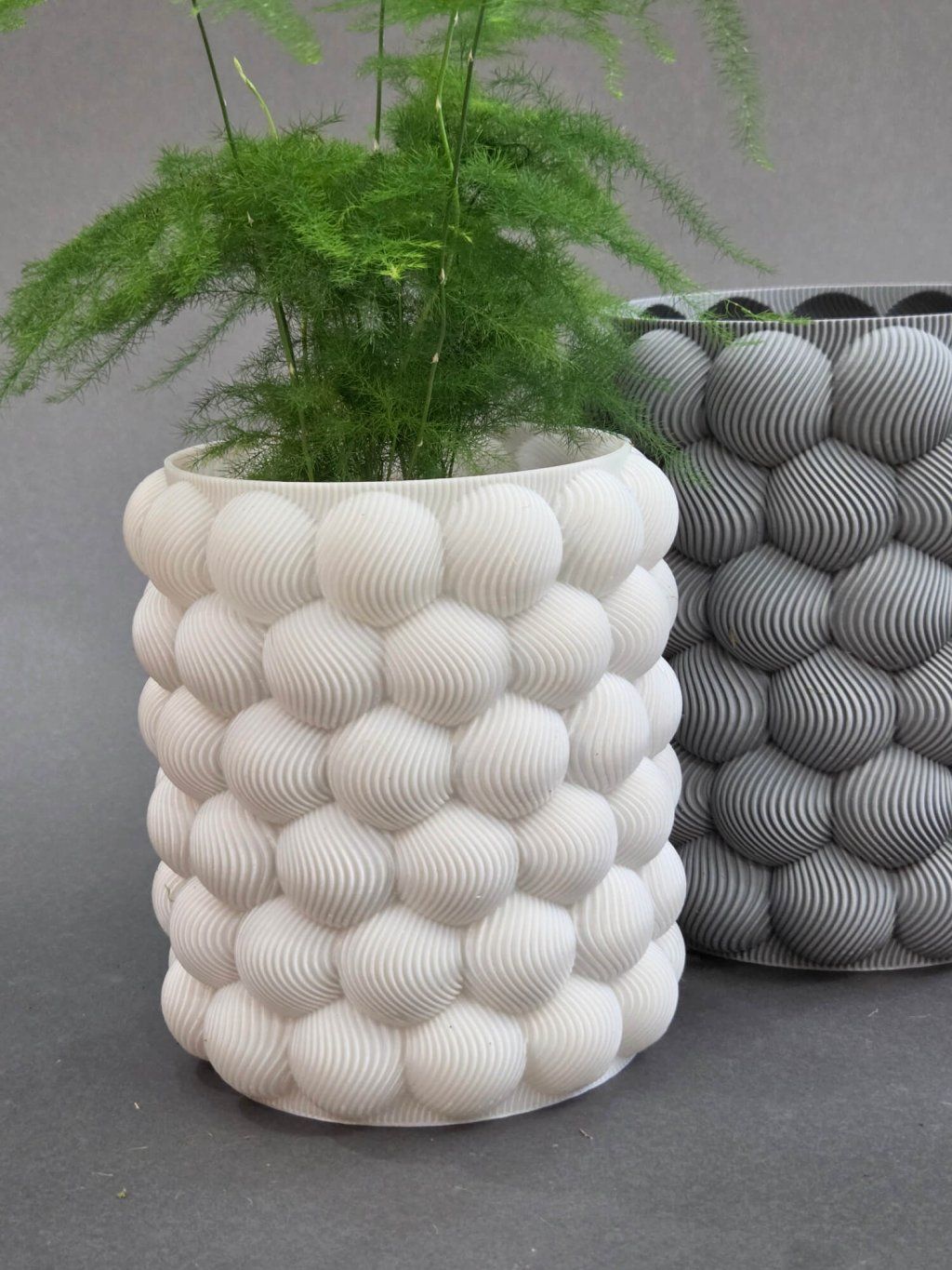 Elegantní obal na květináč s bublinovou strukturou je krásným doplňkem pro vaše pokojovky. Vyniká jedinečnou strukturou, kterou lze vytvořit pouze pomocí 3D tisku.