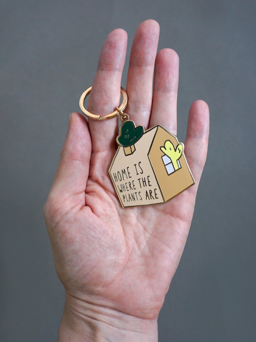 Klíčenka s rostlinným aforismem Home is where the plants are patří do naší kolekce rostlinných doplňků a ilustrovaných aforismů, které pro Zahradu na niti navrhla ilustrátorka Anna Vančurová.