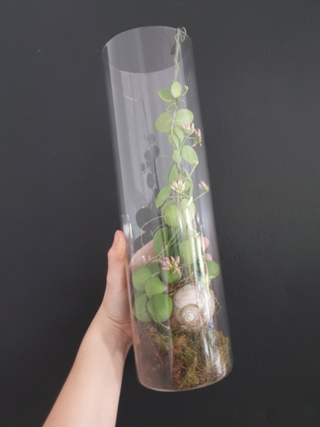 Ulita s rostlinou je umístěna do skleněného válce, který udržuje vyšší vzdušnou vlhkost pokud mech na dně válce navlhčíte. Rostlinu můžete ponechat ve válci nebo, pokud máte doma dostatek vlhkosti, ji zavěsit do prostoru.