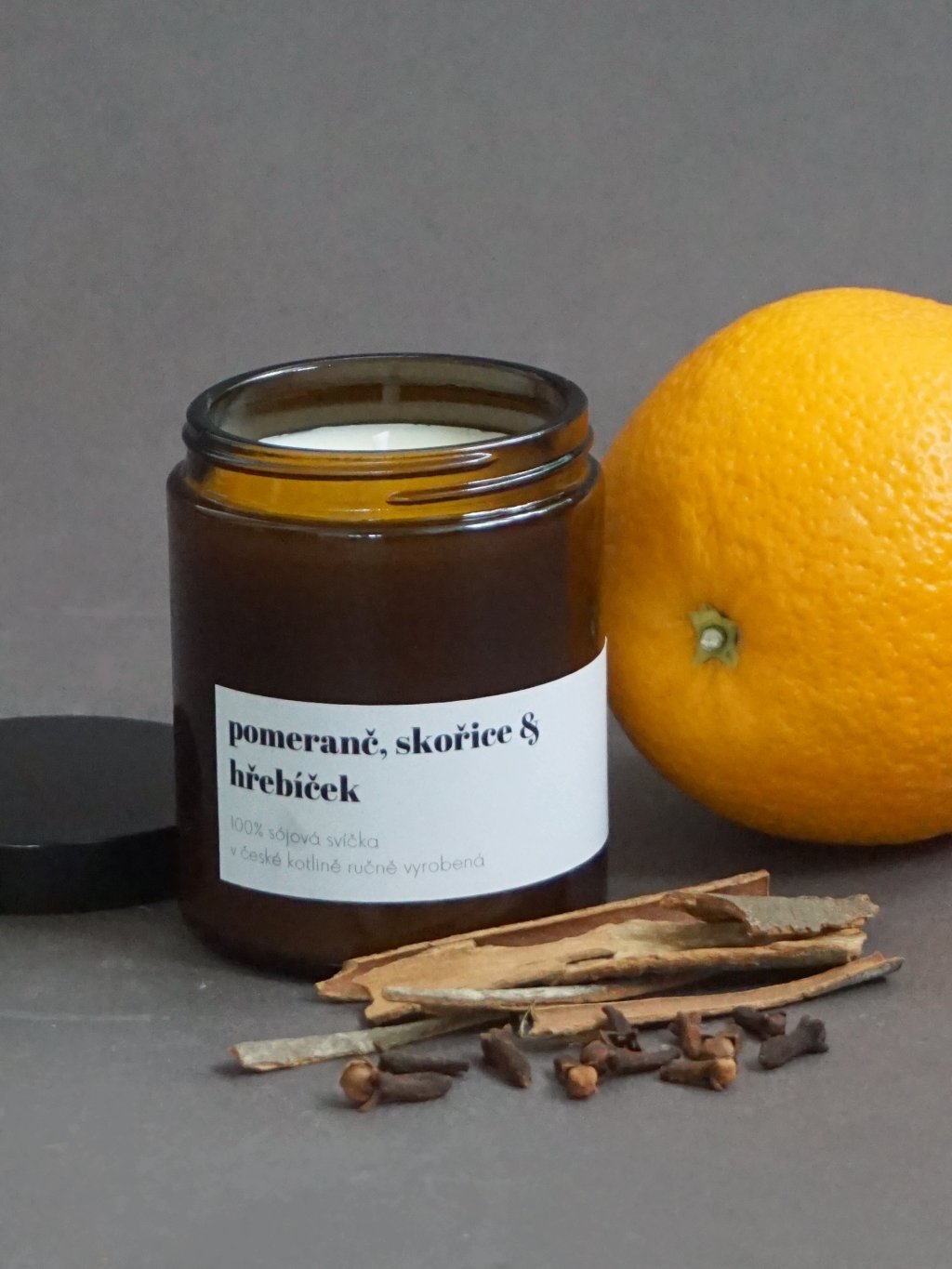 Sojová svíčka Pomeranč, skořice & hřebíček