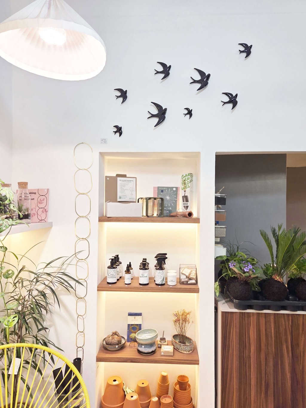 Hejno se skládá ze tři různě velkých vlaštovek, které jsou ručně vyrobené z keramiky v rodinné keramické dílně ve Valencii. Uvnitř jsou vlaštovky duté a ze zadu mají otvor, takže je jednoduše zavěsíte na hřebíček ve zdi.