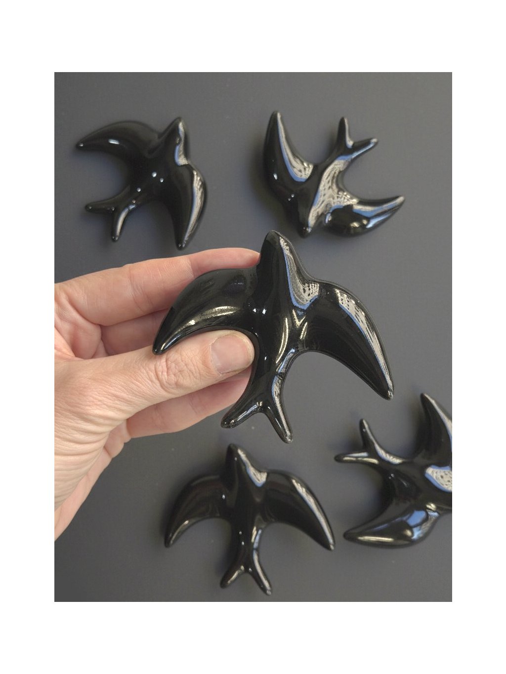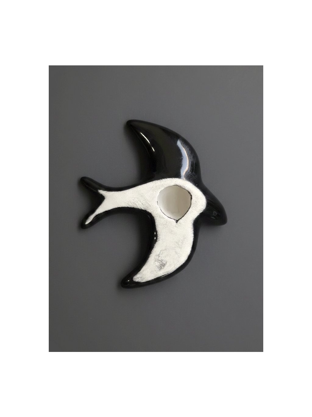 Mini vlaštovka je ručně vyrobená z keramiky v rodinné keramické dílně ve Valencii. Uvnitř je vlaštovka dutá a ze zadu má otvor, takže jí jednoduše zavěsíte na hřebíček ve zdi. Vlaštovky mají na povrchu lesklou glazuru.